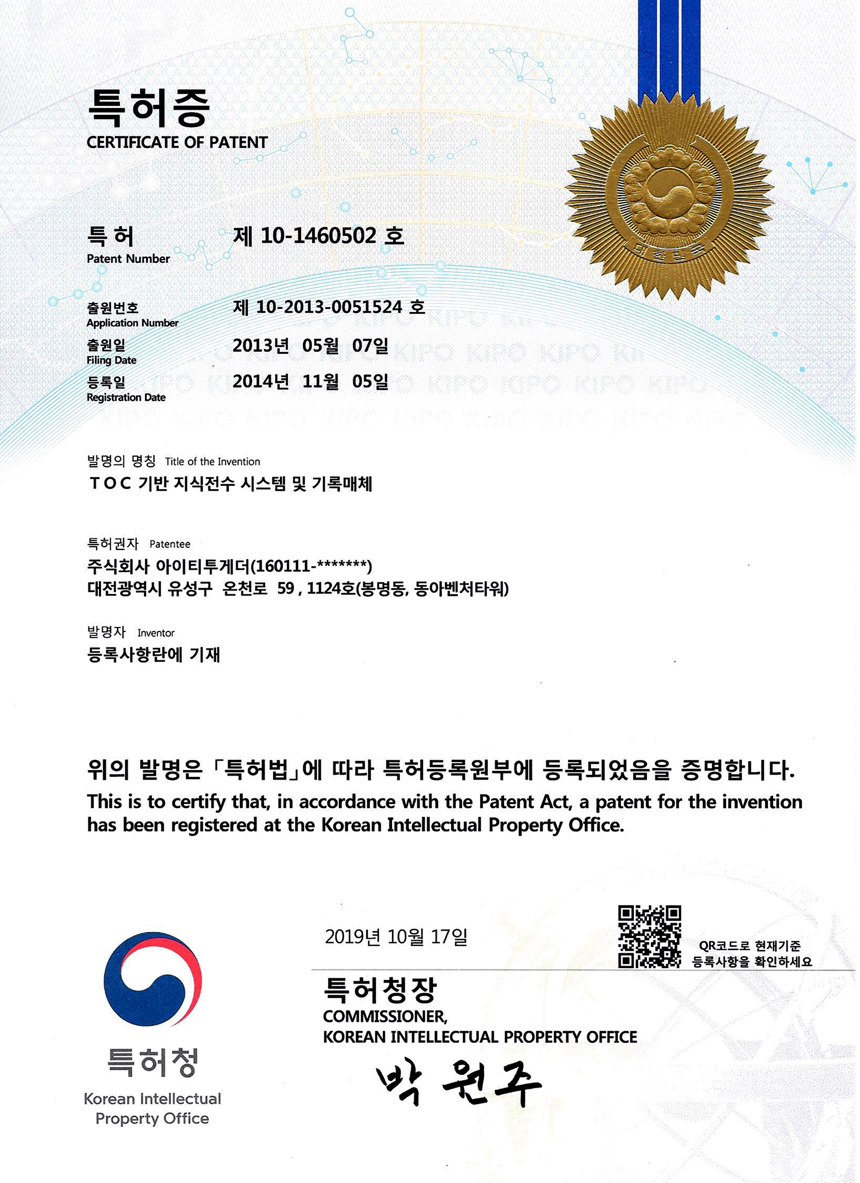 TOC 기반 지식전수 시스템 및 기록매체 제10-2013-0051524호 -